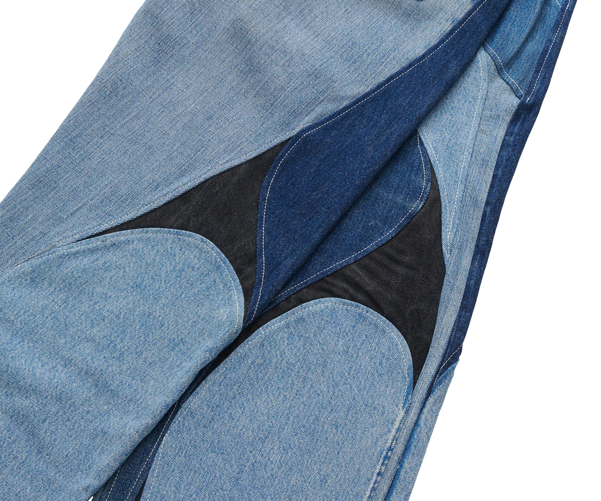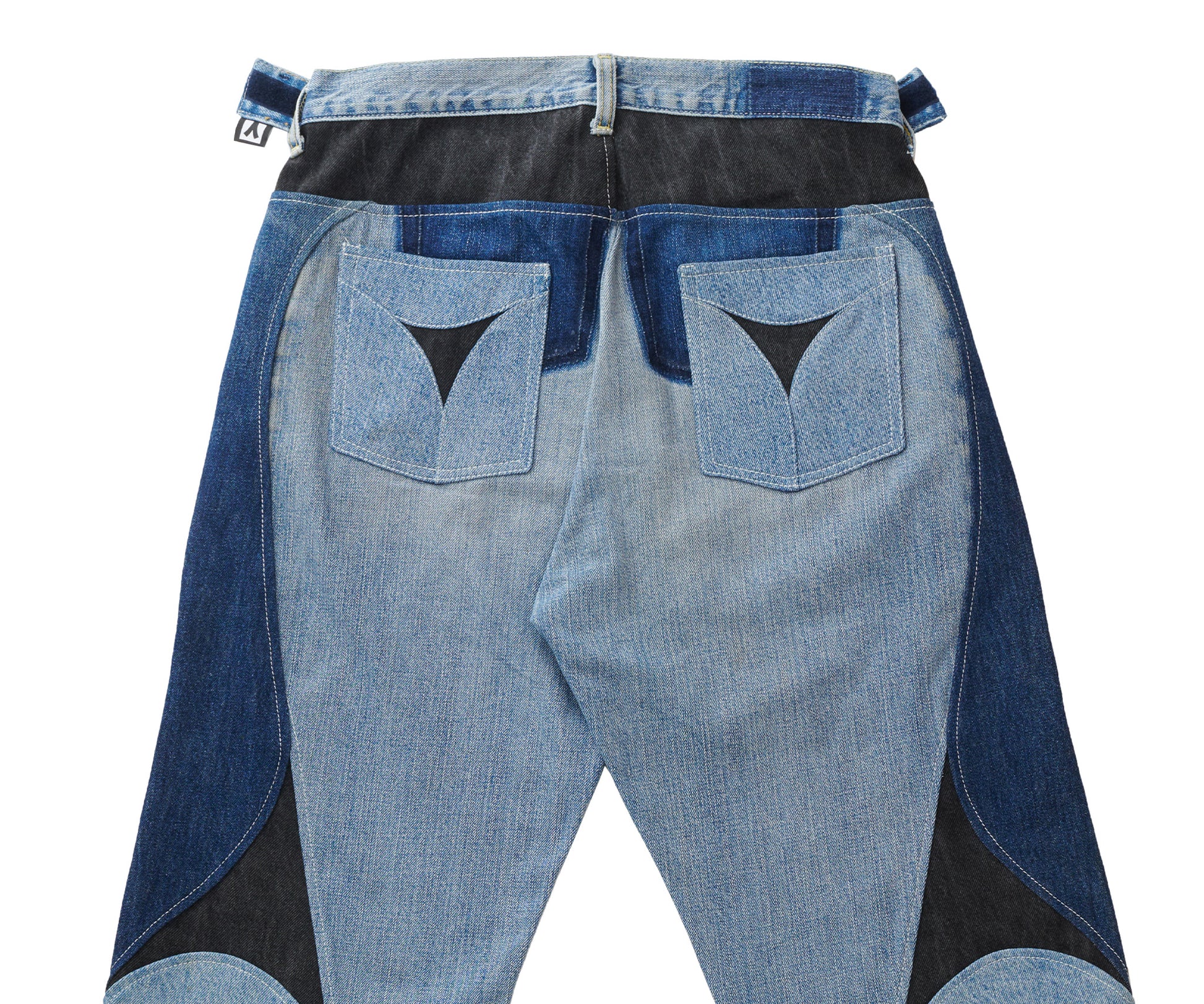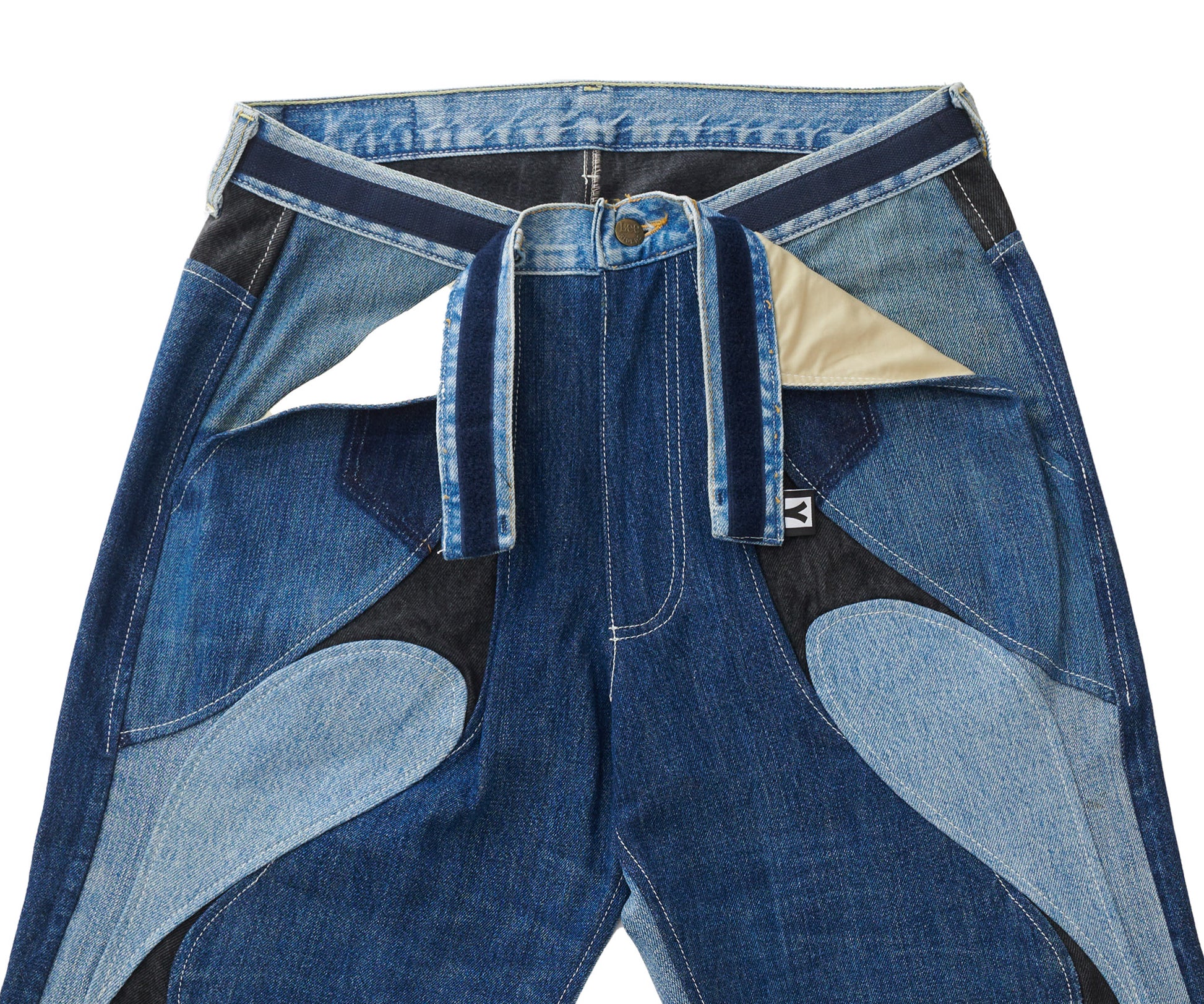 The jeans fits a US W28–38 / EU W44–54 range, thanks to adjustable straps that allow them to accommodate multiple sizes.