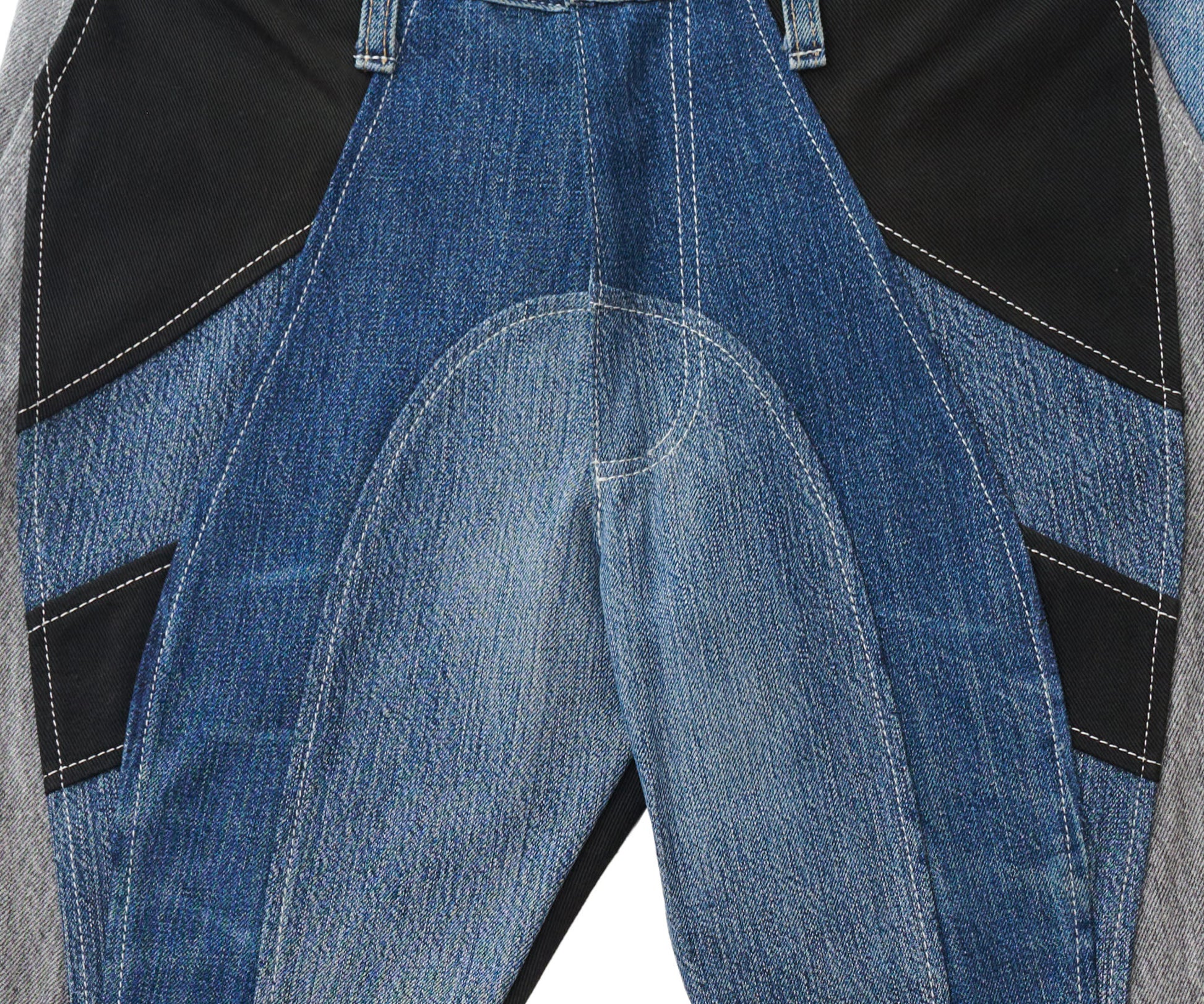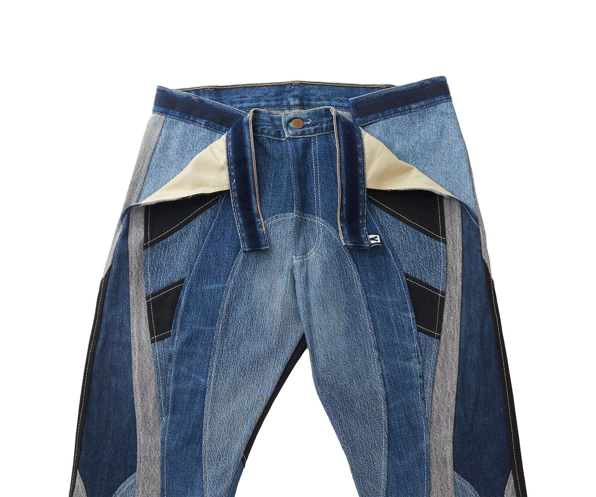 The jeans fits a US W28–38 / EU W44–54 range, thanks to adjustable straps that allow them to accommodate multiple sizes.